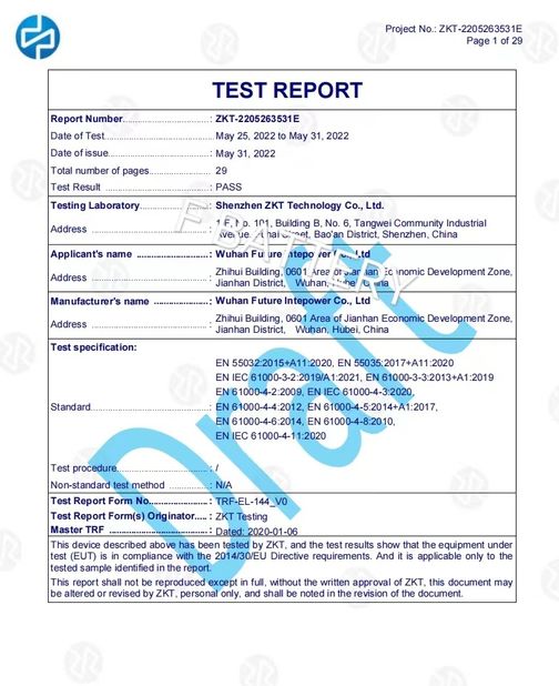 LA CHINE Wuhan Future Intepower Co., Ltd. Certifications